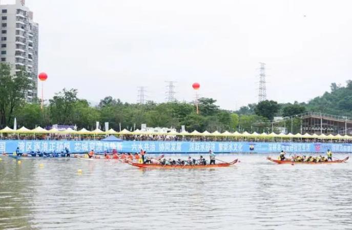 5月25日-26日,深圳市寶安區燕羅街道茅洲河段進行了激情的龍舟賽。本次賽吸引廣大市民前來觀看,來自香港、澳門、廣州和深圳的四支特奧龍舟隊在茅洲河上船槳翻飛,為群眾和游客奉獻了一場精彩的水上競逐盛宴。